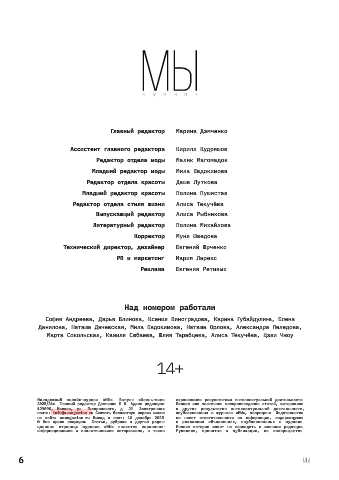 почта: info@wemagazine.ru Скачать бесплатную версию можно опубликованных в журнале «МЫ», запрещено. Издательство
